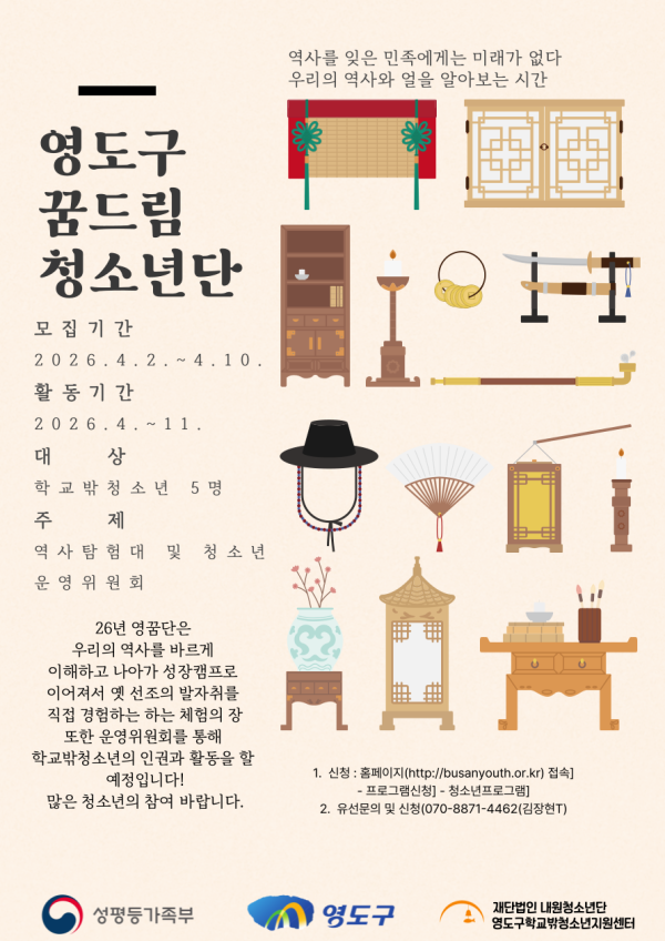 접수중 [학교밖] 영도구꿈드림 청소년단 모집