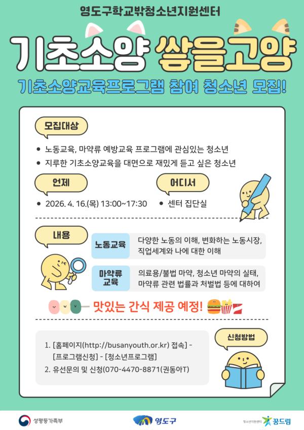 접수중 [학교밖] 2026년 기초소양교육 프로그램 「기초소양 들을고양」참여 청소년 모집