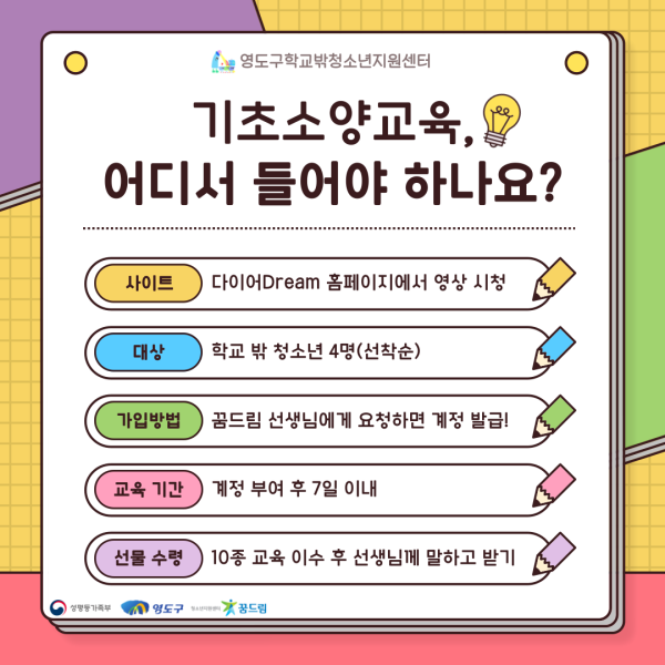 접수중 [학교밖] 2025년 교육지원 사업 기초소양교육 참여 청소년 모집
