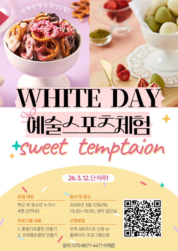 접수마감 [학교밖] 2026년 특성화 사업 예술스포츠체험 YES! 「화이트데이: 달콤한 유혹」참여자 모집
