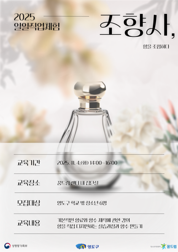 접수중 [학교밖] 2025년 자립지원 사업 일일직업체험 「조향사」 참여 청소년 모집